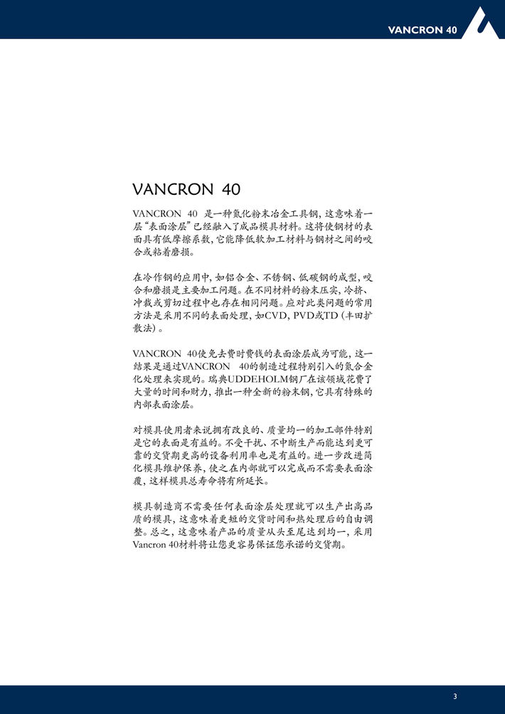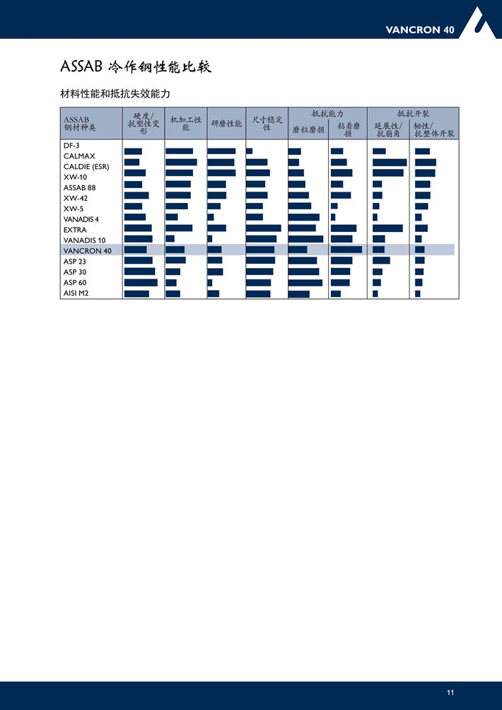 瑞典***V40(VANCRON 40)粉末高速鋼:富氮的粉末冶金模具鋼,具有非常好的抗粘著和抗粘著磨損性能,通常不必做涂覆。...
