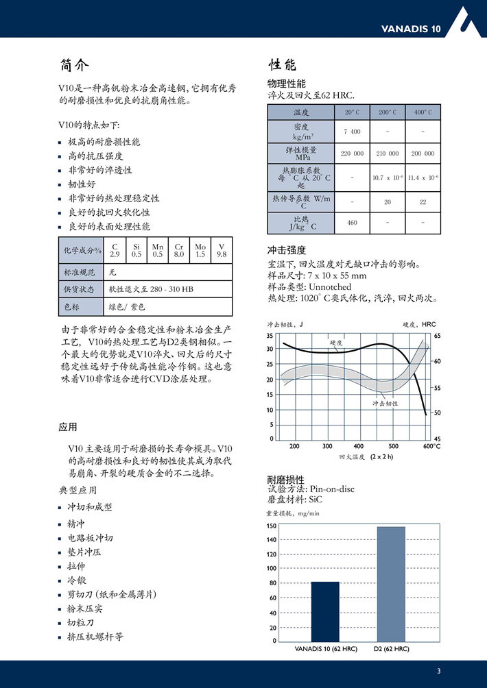 瑞典***V10(VANADIS 10)粉末高速鋼:粉末冶金模具鋼,具有極高的耐磨性。...