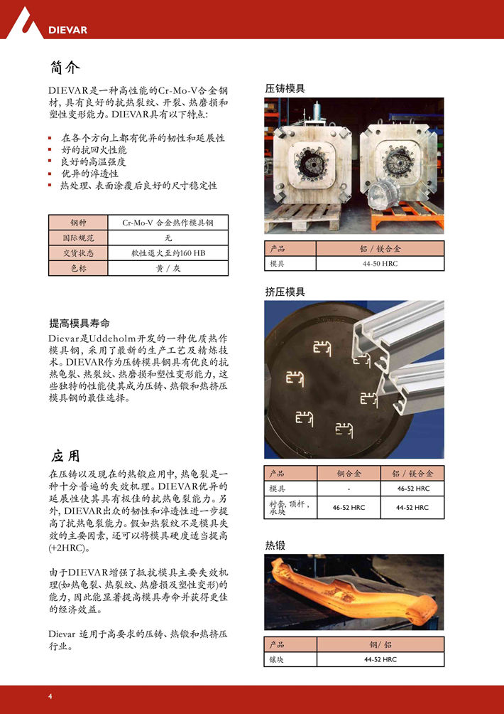 瑞典***DIEVAR熱作模具鋼:高性能熱作模具鋼具有非常好的抵抗熱龜裂,開裂,熱磨損和塑形變性的性能...