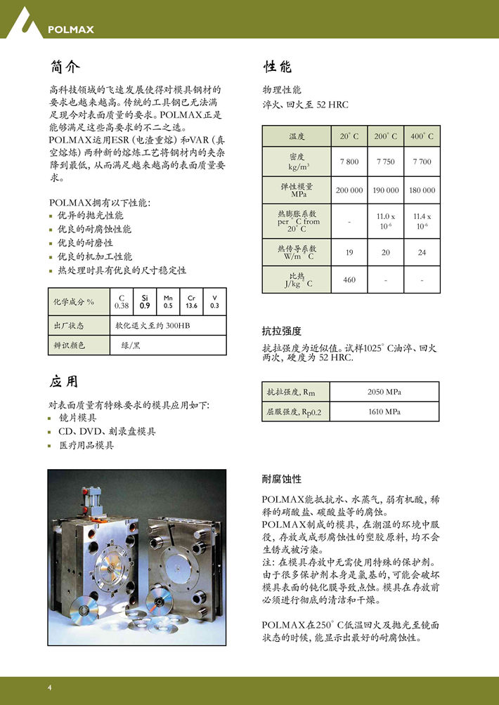 瑞典***POLMAX塑膠模具鋼:出色的拋光性能,優良的抗腐蝕性和耐磨性,優良的機加工性能...